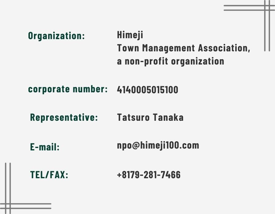 The Himeji 100 Years Conference is operated by the Himeji Town Management Association, a non-profit organization.